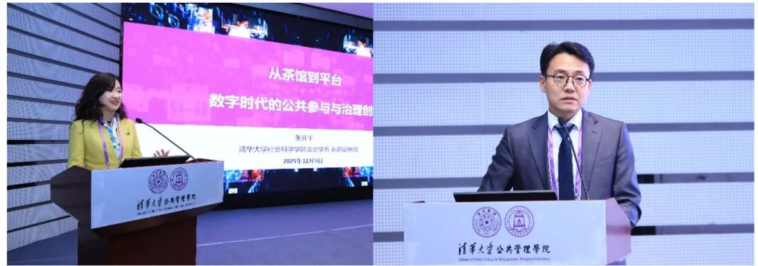 在主题为“数字治理、人工智能及大数据驱动的治理创新”的第二分论坛中,张开平与金东焕围绕技术如何重塑治理形态展开了交流。张开平以“从茶馆到平台”这一形象比喻,梳理了公共参与形态的演变历程,指出数字平台已成为驱动现代治理创新的关键引擎。金东焕则聚焦人工智能在公共行政、法律审查、心理咨询等特定领域转型中的应用潜力,同时指出技术发展对工作模式、社会共识与制度保障以及教育体系改革所带来的挑战。在随后的点评环节,孟庆国肯定了数字平台在参与式预算等领域的创新价值,同时提醒需警惕人工智能融入治理过程中可能加剧数字鸿沟、算法替代民意等风险。文命在认为,数字平台革新了传统的公共参与和协商机制,可显著提升治理效能,并强调技术创新需与组织和制度创新深度融合,方能充分实现其效用。嘉宾们还围绕数字平台在公共治理中的具体应用,以及隐私保护、算法公平性和实质性制度构建等关键议题,进行了深入的互动讨论。