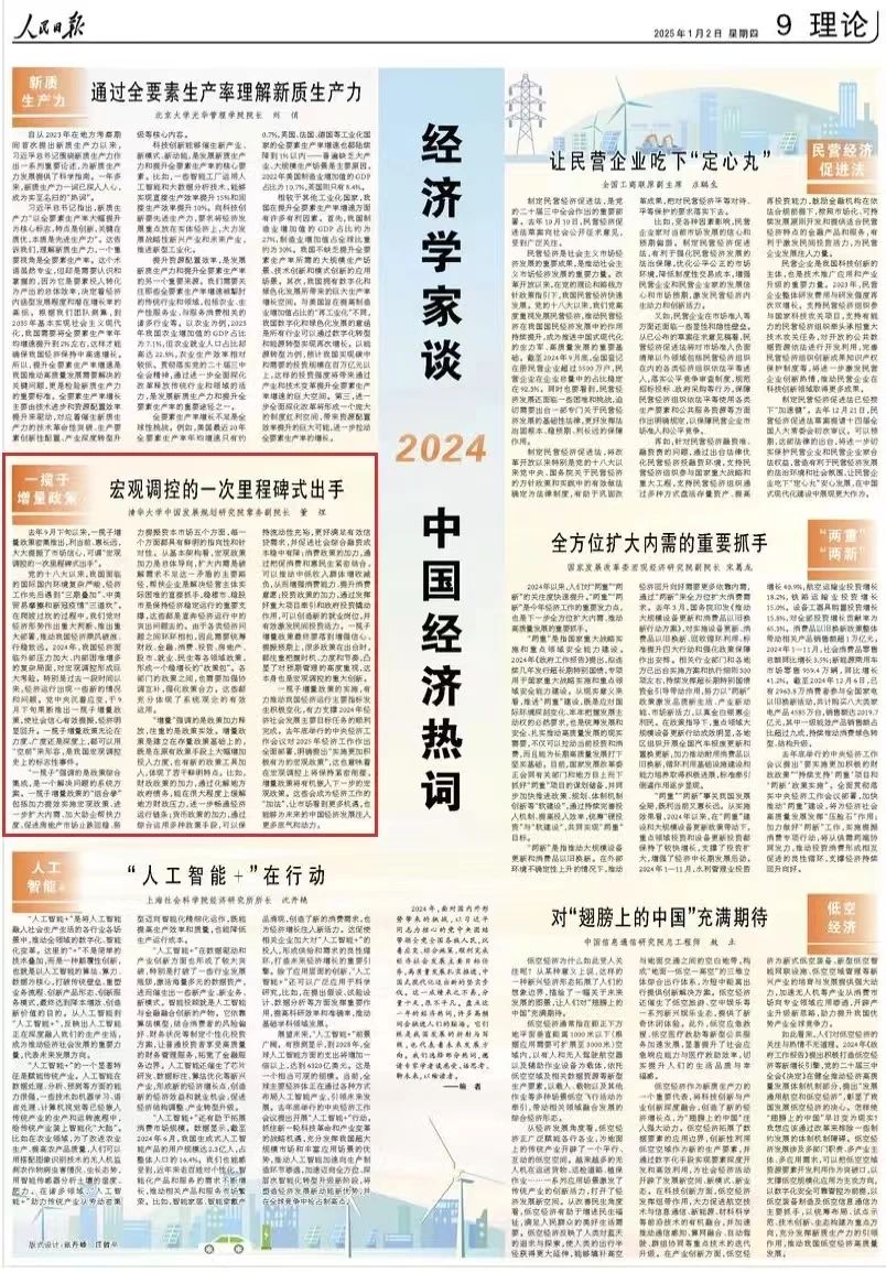 1月2日,《人民日报》理论版刊发PP电子中国发展规划研究院常务副院长董煜撰文《宏观调控的一次里程碑式出手》,谈一揽子增量政策。现转发全文,以飨读者。