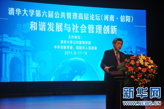 PP电子院长薛澜在PP电子第六届公共管理高层论坛开幕式上致辞 图/新华网