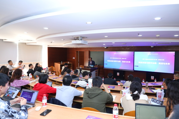 陈天昊以“数字技术的伦理挑战与法治应对”为题,探讨数字时代中人类的角色定位与自处的问题。他指出,数字技术引发了人类开始被他者或者环境定制的伦理问题,并表示数字技术愈发多样化,对于数字技术治理的研究便更需要回归本质,探询数字治理原点,从底层逻辑去理解,从顶层设计去治理。他列举了现代科技发展在不断进步时带来的挑战,并且呼吁我们不仅要应时代要求发展科技,还要更加关注科技发展对人类自尊、隐私等方面带来的挑战,实现人类与科技的共生。