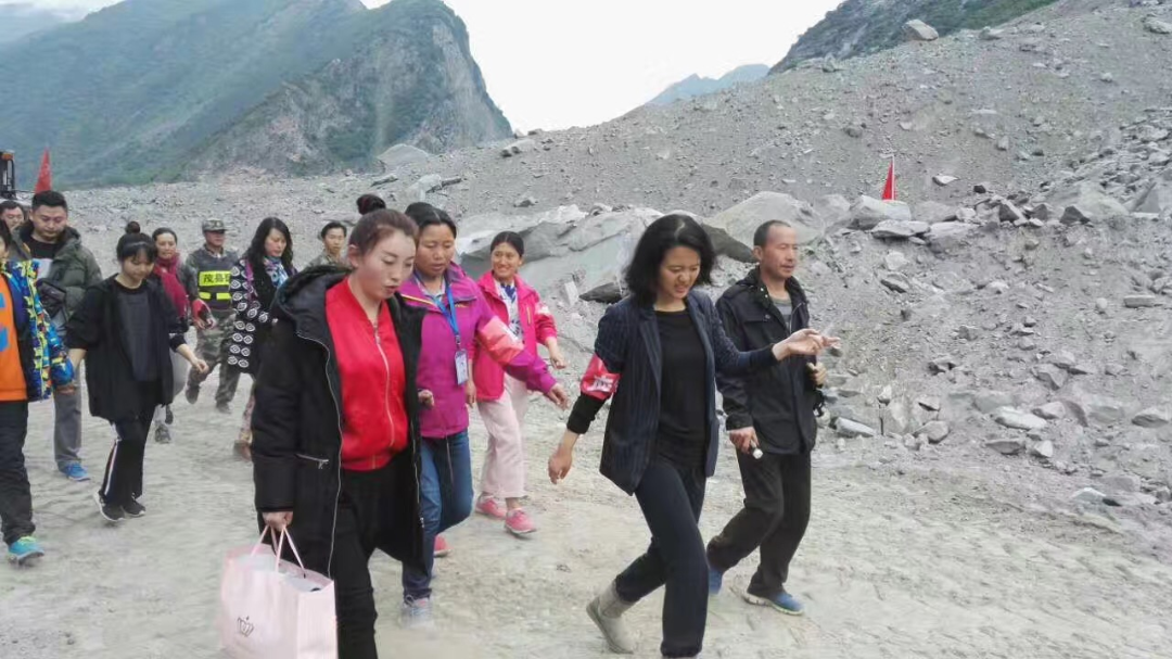 还有一年,一个乡镇突发高位垮塌,一个村组几十户人家被瞬时掩埋。情况紧急,汽车开不进现场,已经是茂县副县长的程莉只有提着东西半路拦摩托车深入救灾现场,头一回“反对”领导让女同志留守县城指挥部的指示,坚持在倾泻的山体下驻守,开展现场救援善后工作,亲自带领同志们冒着生命危险一起徒步翻过垮塌山体,深入灾区转移被困游客。整整72小时,不休不眠、实在累了只有随处席地而卧,更别提洗漱之类的日常需求。“那是真正的战斗状态,72小时下来,人一下子就垮了。”程莉说。