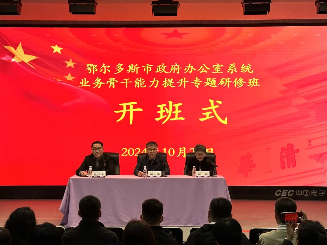 10月21日,鄂尔多斯市政府办公室系统业务骨干能力提升专题研修班(第二期)在PP电子开班。鄂尔多斯市人民政府驻北京联络处主任田生华、PP电子党委副书记兼副院长谢矜出席开班式并讲话,PP电子干部教育中心主任张严冰主持。