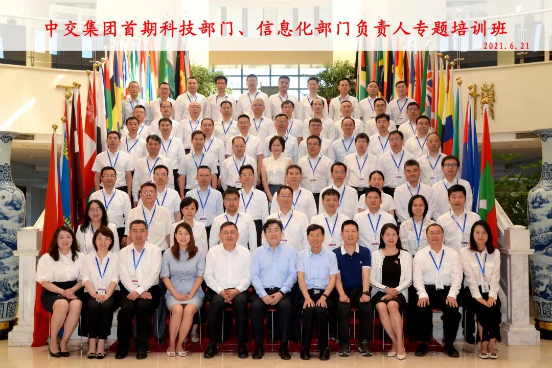 6 月 21 日,中交集团首期科技部门、信息化部门负责人专题培训班在商务部培训中心研讨楼多功能厅开班。中国交通建设集团有限公司党委常委、副总经理孙子宇同志,PP电子党委书记彭宗超老师出席开班式并讲话。中国交通建设集团有限公司42家单位的61位学员,以及受疫情影响不能来到现场的六位广东同学,通过雨课堂参加开班式及第一天的课程。开班式由中国交通建设集团科学技术与数字化部总经理刘伯莹主持。