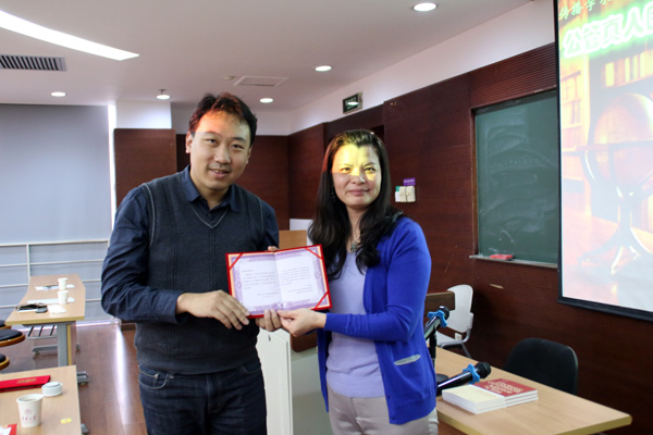活动中,刘五一老师简单介绍了学院提出举办“公管真人图书沙龙”的初衷及活动特点,代表学院图书馆接受了王名和张楠老师捐赠的著作,并向两位老师颁发了捐赠荣誉证书。老师们的著作将收藏在学院图书馆的“教师著作专架”之中。