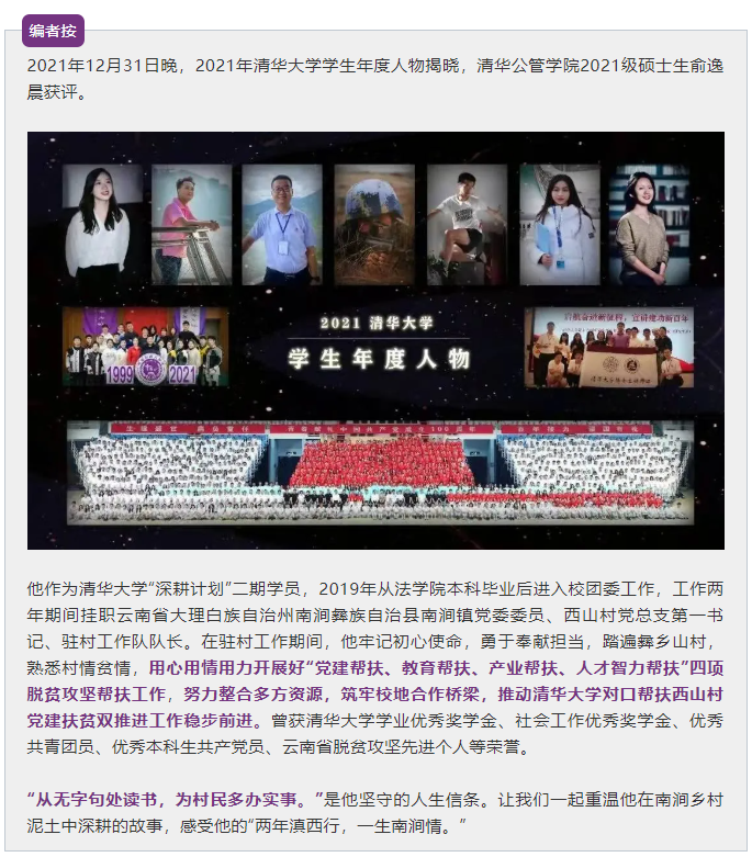 我自豪于能够参与到脱贫攻坚这一伟大的事业当中,也感谢我在南涧所遇到的每一个人。南涧的山山水水、一草一木,会成为我记忆中最美丽的风景,我也已深深打上了南涧人民淳朴厚道、刚毅坚韧的烙印。在今后的岁月里,我将把南涧作为第二故乡,作为我的精神家园,永远铭记于心。