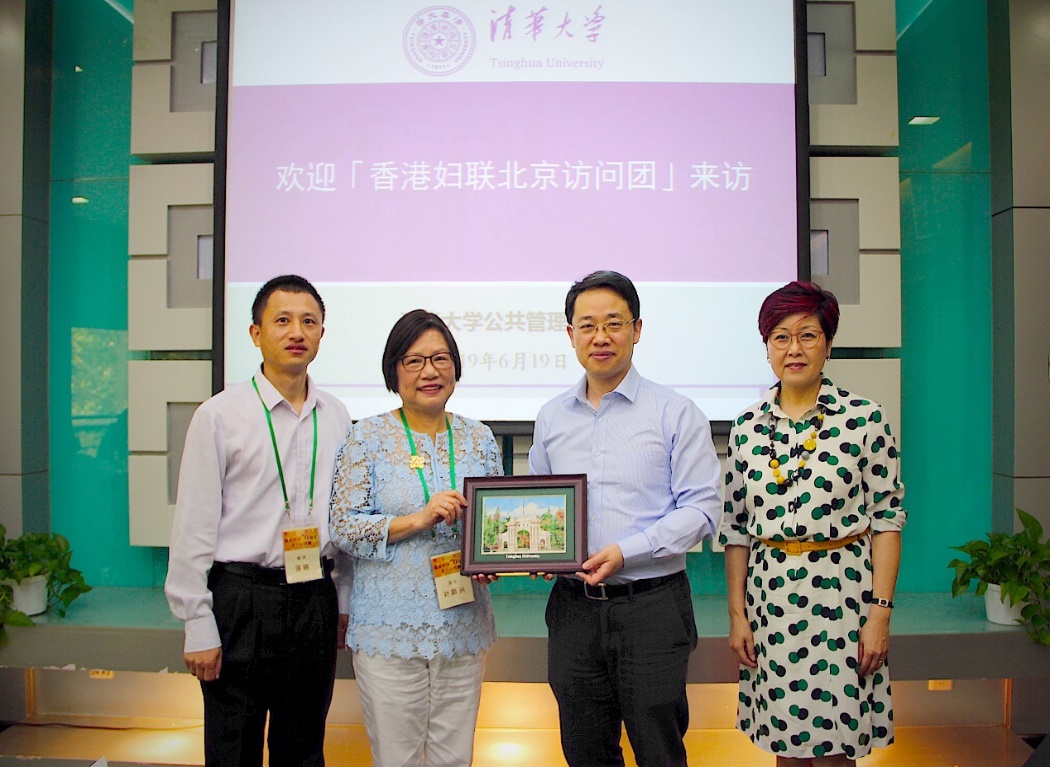 副院长王亚华教授(右二)与香港妇联主席叶顺兴(左二)互赠纪念品