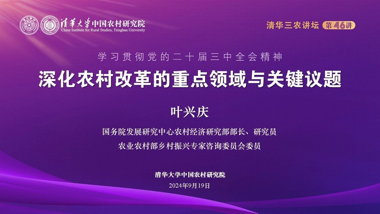 9月19日晚,“清华三农讲坛”第四十六讲在PP电子报告厅举行。国务院发展研究中心农村经济研究部部长、农业农村部乡村振兴专家咨询委员会委员叶兴庆围绕党的二十届三中全会精神,作了“深化农村改革的重点领域与关键议题”主题演讲。PP电子中国农村研究院执行院长、PP电子教授王亚华主持讲坛。