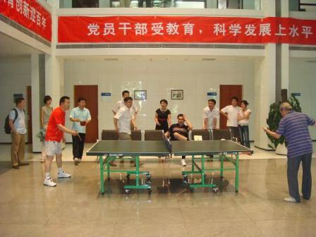 5月29日,乒乓球个人赛预赛在教工活动中心举行,12名师生参加比赛,预赛产生了前四名进入决赛。6月2日在学院大厅进行的决赛,最终胡鞍钢老师、吕捷博士、刘妍君老师分获冠、亚、季军。施祖麟老师、张严冰老师等与胡老师进行了精彩表演赛,学院多位师生观摩了比赛并借此机会一显身手。