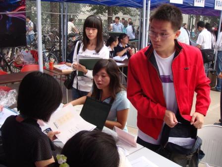 早上7点,学院业务办公室和研工组负责迎新工作的老师以及志愿者就来到了报道现场,整理好场地和材料,等待新生的到来。7点半,新生同学陆续来到迎新点办理手续。协助办理报到手续的志愿者包括07和08级的高年级同学以及提前入校参加暑期团校的10名09级同学。新老学生在一起交流选课、学习、科研、生活等方面的情况,使新生更快地了解入学后的状况,气氛非常热烈。