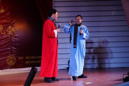 新年晚会以研究生会制作的开场DV——“公新纪”以及12级研究生开场舞蹈《江南STYLE》拉开序幕,以四大板块——“SPARK”、“PASSION”、“PARTICIPATION”和“MEMORY”为主题。于安老师、张严冰老师的相声《新年是真的吗?》作为老师们奉献的第一个节目掀起了阵阵笑声;政府所、中国应急管理研究基地、国情研究院、台湾所、国际所、NGO所、中国工程科技发展战略研究院也先后展示了精心准备的节目;学生班级以歌曲和话剧的形式展现出年轻人的激情、活力以及对学院无限的热爱,进而给我们带来了惊喜。在观看节目之余,大家也积极参与短信平台互动,以发送短信的形式共同推选了本场晚会最喜爱的节目——博12情景剧《公管好声音》。