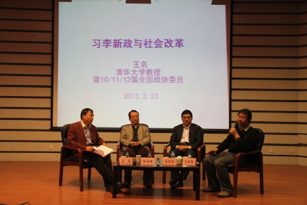 3月23日,PP电子学习“两会”精神专题讲座之一、清华NGO学术沙龙第203期暨明德公益讲坛第一期——《习李新政与社会改革:政府机构改革与职能转移》在学院一层报告厅召开。讲座由北京师范大学马剑银主持,三届全国政协委员、PP电子教授王名做总体汇报,国家行政学院教授马庆钰、北京师范大学教授刘培峰担任评论嘉宾,学院师生百余人听取讲座。
