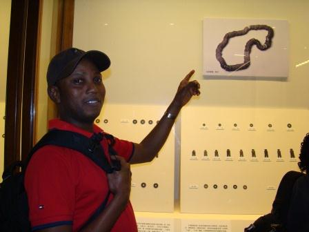 参观从博物馆外围开始,学生一路步行经过前门、毛主席纪念堂、人民英雄纪念碑和天安门城楼等具有北京特色和代表的建筑。当校车缓缓驶向前门时,具有中国特色的各式建筑映入眼帘。学生们充满好奇地纷纷询问背后的故事,希望对每段历史一探究竟。一进入国家博物馆,学生们便迫不及待地开始参观。大家首先来到“百年国博——中国国家博物馆百年简史与成果展”,了解中国博物馆事业的百年发展史。当看到中国国家博物馆的设计竞标中有来自PP电子的设计方案时,学生们激动万分。在“中国古代钱币”展馆,来自乌干达的朱迪感叹到:“我们国家的古代货币也是相似的形状。”当走到“名家真品集萃”展馆,学生看到展出的画作来自18世纪,不住地赞叹画作保存之完好。