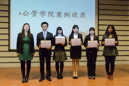 最后,慕玲主任宣布了《北京市“以房养老”试点现状分析》、《地方政府的创新社会治理之道——以重庆忠县自强残疾人服务站为例》、《鄂尔多斯市“鬼城”康巴什新区的城市建设与人口迁移》、《非营利组织农村扶贫模式探究——以嘉里集团郭氏基金会为例》、《关于“超级中学”产生原因的政策分析》、《解锁工程——精神病人回归社会的道路》、《小城大劫——河南省安阳市非法集资事件调研报告》、《异地高考》、《浙江省玉环县清薪办工作模式研究》、《厦门市同安区潘涂村土地维权抗争事件调查分析报告》10个案例入选中国公共管理案例库,并为这些案例的作者颁发了案例收录证书。大赛在热烈的气氛中圆满落幕。
