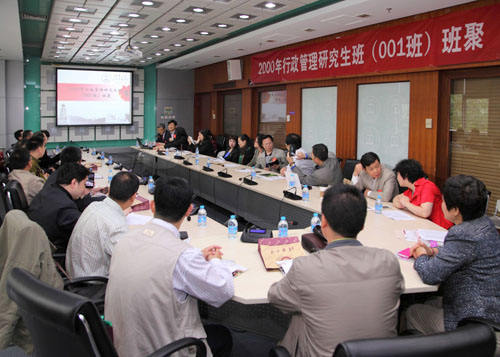 2014年4月27日,公管学院2000年行政管理研究班(001班)班聚在学院302教室举行。本次班级聚会共有超过30名001班成员参加,他们中有在地方政府任职的部门领导,有在军队参与国防建设的优秀军官,也有在各行各业发挥作用的杰出毕业生。薛澜、孟庆国、谢矜等学院领导以及王有强、施祖麟、沈群红等多位当年参与授课的教师出席,并与返校院友进行深入交流,气氛十分融洽。