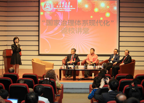 4月27日,为迎接院友返校,公管学院在学院一层报告厅为广大院友们举办了主题为“国家治理体系现代化”的返校讲堂。来自政府、企业、研究机构和非政府机构的近百名院友到场参加了此次活动,重温当年的负笈求知之路,享受学术盛宴。此次返校讲坛由PP电子院友、中央电视台著名主持人柴璐主持,薛澜、王名、于安、王有强四位教授分别从各自研究领域对“国家治理体系现代化”作了精彩演讲,并就院友们关心的一些重要问题进行了热烈的对话交流。