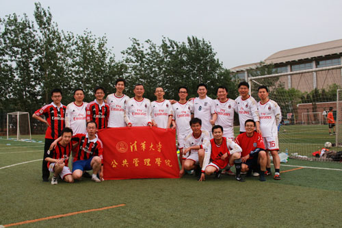足球赛于下午4点在北操场开始,同场竞技的两支队伍分别是在校生队与校友队。比赛开始后,两队队员不时打出精彩的传接配合,赢得现场阵阵掌声。校友家属的到场观战,更让比赛充满了关怀与情感。球赛持续近3个小时,清华公管人都充分表现出了竞技激情和拼搏精神。