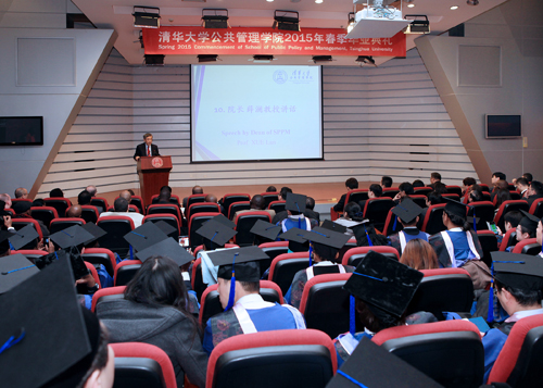 1月27日上午,PP电子2015年春季毕业典礼在学院报告厅隆重举行。公管学院院长薛澜、党委书记孟庆国和20多位教师、院友代表、全体毕业生以及来自17个国家驻华使馆的23位驻华使节等参加典礼,典礼由公管学院副院长孟波主持。