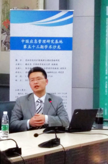 魏玖长结合自己的长期研究,介绍了危机信息传播的多种模式和扩散机制,并介绍了他近期对群体性突发事件的态势演化模型、网络舆情干预策略的研究与分析。他的研究围绕着危机信息扩散、社会风险感知、危机决策等议题展开,引起了在场学者和同学们的热烈讨论。姜传胜对讲座做了精彩点评;朱旭峰就突发事件中不同媒介的传播路径、信息扩散的地理因素等问题与魏博士进行了讨论;伍国春就媒体的公众信息接受度问题与魏博士进行了交流。沙龙还讨论了大数据与应急管理研究的相关问题。