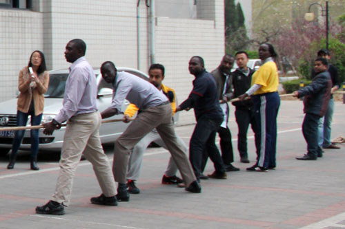 4月10日下午,公管学院MPA和IMPA同学在公管学院研工组、学院研究生会的组织下,开展了一场别开生面的拔河比赛。两队各12名成员,身边围满了加油打气的拉拉队。拔河比赛共经历三轮,IMPA同学首轮告捷,MPA同学也不甘示弱,在第二局扳回一局,双方在各有胜负的情况下展开激烈的第三轮比赛,最终IMPA同学在激烈的拉锯战后获得了胜利,学院党委副书记谢矜为他们颁发荣誉证书。MPA同学依然信心满满,队员们纷纷表示要在即将举办的篮球、羽毛球等比赛中取得更好的成绩。
