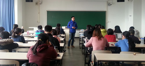图为邓飞在《非营利组织与管理》课堂上讲授真实案例。