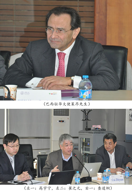 图为巴西驻华大使莱昂先生与中方学者交流。