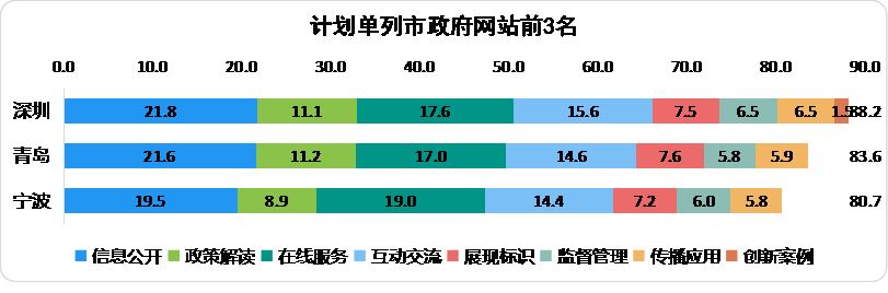 计划单列市政府门户网站中,深圳、青岛和宁波位列前三名。得分如下: