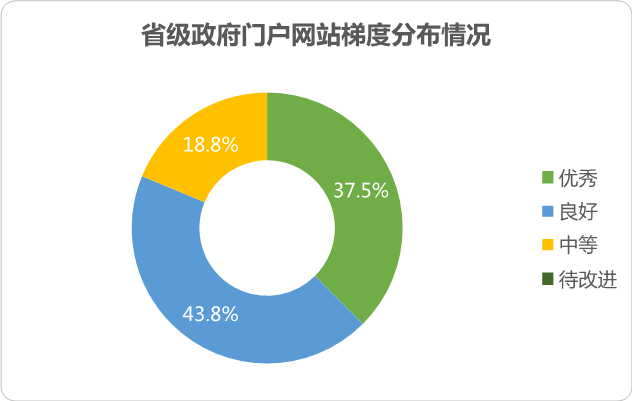 省级政府网站中,12家网站位于“优秀”梯度,14家位于“良好”梯度。省级政府门户网站梯度分布情况如下: