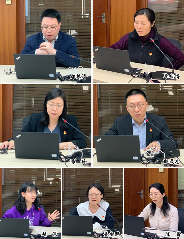 随后,与会人员就重点问题进行讨论。周绍杰主要就支部规范化建设、博士后党支部重组设想、党小组和支部委员作用的发挥、支部联合共建等方面提出建议;谢矜建议教职工党支部与学生党支部更多开展联合共建活动,助力学生的“五育”教育;朱旭峰建议党支部加强与群众的交流,关心教师工作生活的同时,促进教师党员发展和民主党派人选推荐等工作。大家还就学术研究和党建相结合、各所活动如何开放共享等开展了热烈的讨论。