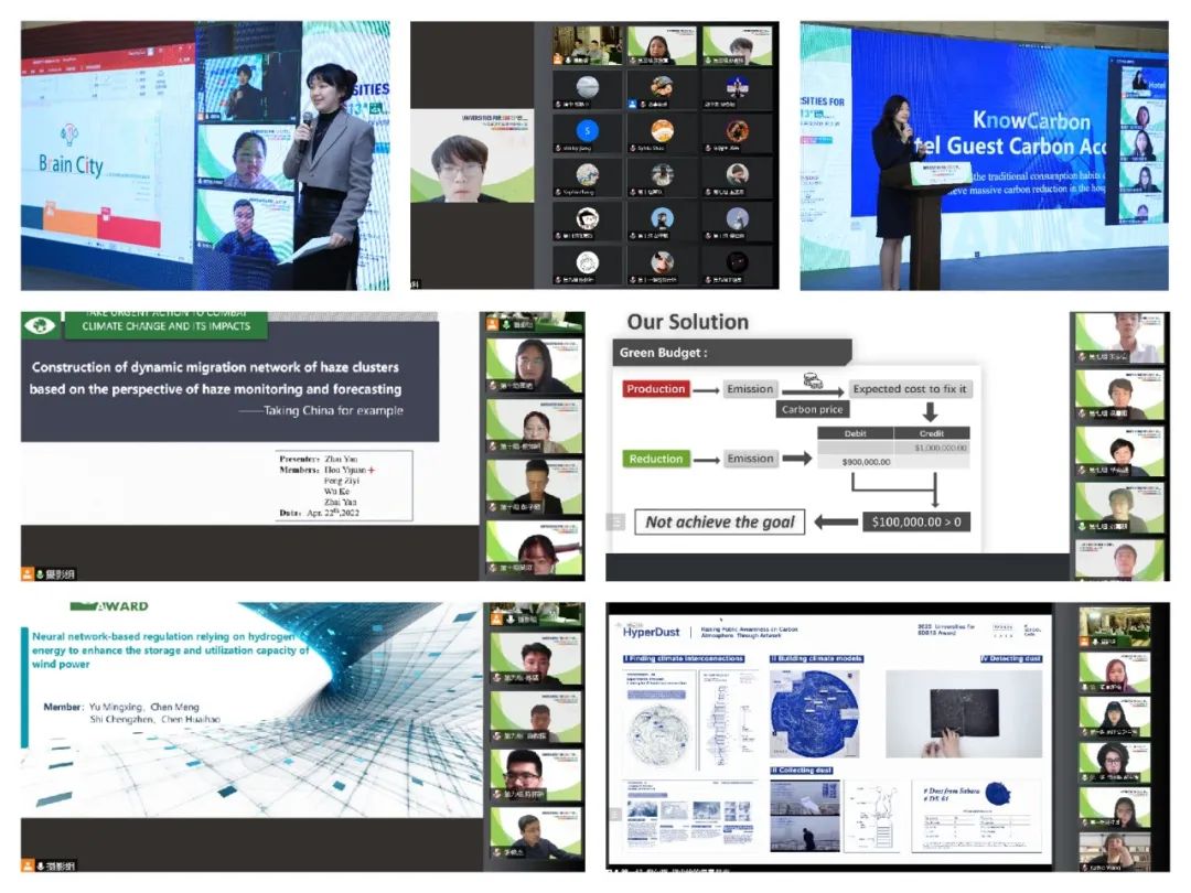 11支决赛团队围绕“SDG13-气候行动”,结合跨学科知识与技术创新,为气候变化与全球治理提供了多个创新思路与解决方案,包括“雾霾检测与治理、气候变化社区参与、景区固废处理回收、碳封存与森林管理、技术助力光伏电站、个人碳排放与碳交易”等时下热点话题。每个团队通过精彩的“现场创新方案展示”,充分展现了中国大学生对“气候变化”与“可持续发展”等概念的深入理解和有力诠释。在问答环节,评审专家与每位学员分享了气候领域的前沿科学知识、行业视角与实操经验,现场双方激发了更多气候创新灵感与深度讨论。