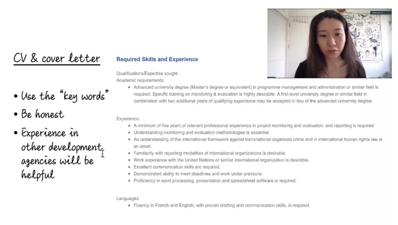 清华公管学院助理教授桂天晗老师基于自己在联合国机构的工作经历,与同学们分享了针对联合国机构的岗位搜索、简历撰写、面试与笔试准备等方面的求职技巧。桂老师提到,多数联合国机构的岗位要求申请人拥有至少2年以上的工作经验。对于有志于赴联合国机构工作的应届硕士毕业生来说,可先在同类领域的其他国际组织或NGO积累工作经验,以增强自身的工作能力和竞争优势。
