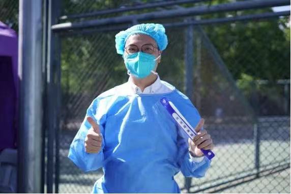 在北京疫情防控歼灭战的攻坚时刻,能参与到学校核酸检测的志愿服务工作中感受颇深。炎炎夏日,所有的医务人员、志愿者、安保、后勤都为着一个共同的目标而不辞辛劳地努力着,心往一处想、劲往一处使,保障着园子内数以万计师生的核酸检测有序进行着。而作为听涛西侧核酸检测点的“点长”,经历了8小时的服务时长,负责着医护和志愿者的协调、物资后勤的保障,忙碌于一环扣一环的工作流程,穿梭于不同通道的培训与处突……收获了难得的经历和感动的瞬间。“同舟共济、以爱战疫”的共同信念,激励着我们为恢复常态的一天的早日到来,共同努力。