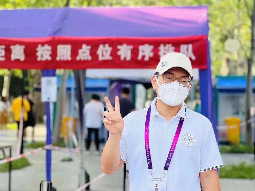 作为即将离校的毕业生,很开心能有机会参与本次核酸检测志愿活动。作为信息录入志愿者,最让我感动的是很多同学拿到试管后开心地说,“我终于成为管长了!”“这已经是我第三次当管长,看来我是天选之子!”“可恶,就差一位轮到我来当。”一句句话语背后,我感受到中国青年骨子里的乐观和疫情防控必胜的决心。从迅速搭建降暑方舱改善医护人员工作环境,到架起凉棚以供排队同学避暑,再到根据天气推后核酸检测时间,我也感受到学校疫情防控工作的贴心细致。“群之所为事无不成,众之所举业无不胜。”相信我们定能早日渡过难关,疫情退散!