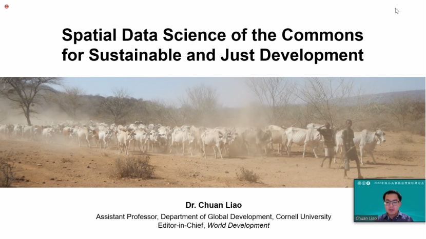 廖川以“面向可持续发展的公共事物空间数据科学”为题,首先阐释了公共事物治理研究对可持续发展实践的学科价值,并总结了以埃莉诺·奥斯特罗姆为代表的公共事物学者对可持续发展研究的贡献。随后,廖川介绍了GIS、GPS、遥感技术、空间云计算为代表的空间数据科学在公共事物治理中的重要作用,并以牧场管理为例,展示了空间数据科学的应用如何赋能研究者更好地把握资源、政府组织和资源用户之间的交互活动。廖川认为,空间数据科学的应用对于推进多中心治理和可持续发展都具有重要价值。