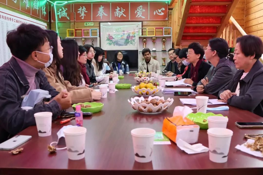 师生在布韵传奇手工编织专业合作社参与座谈会