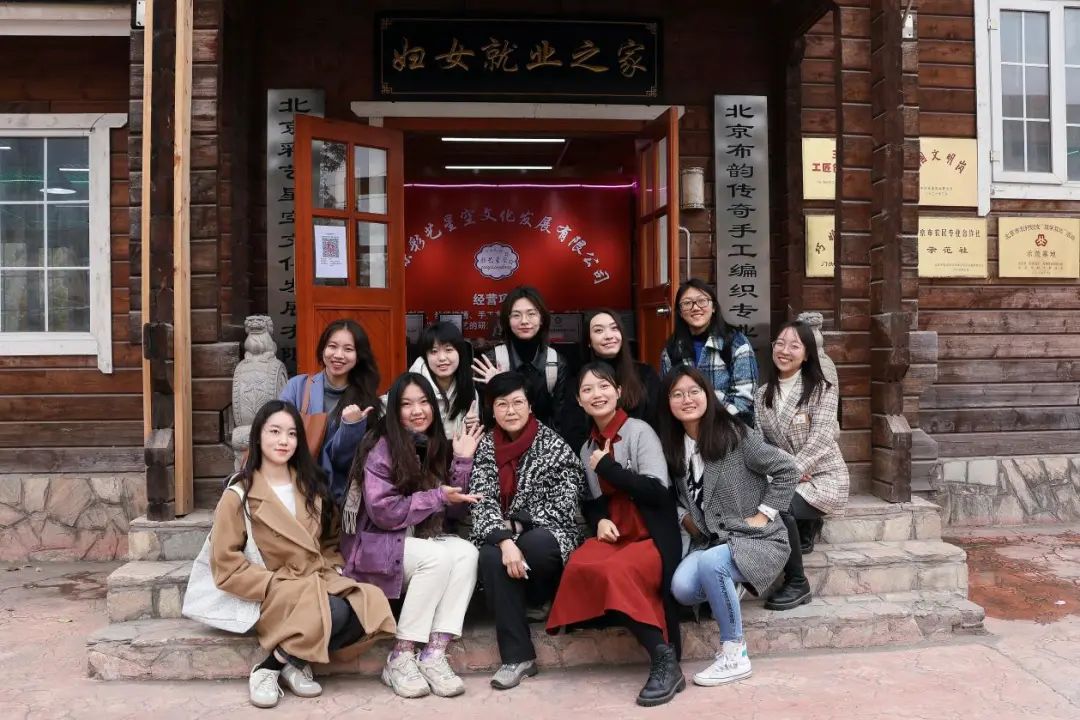 师生在布韵传奇手工编织专业合作社门前合影留念