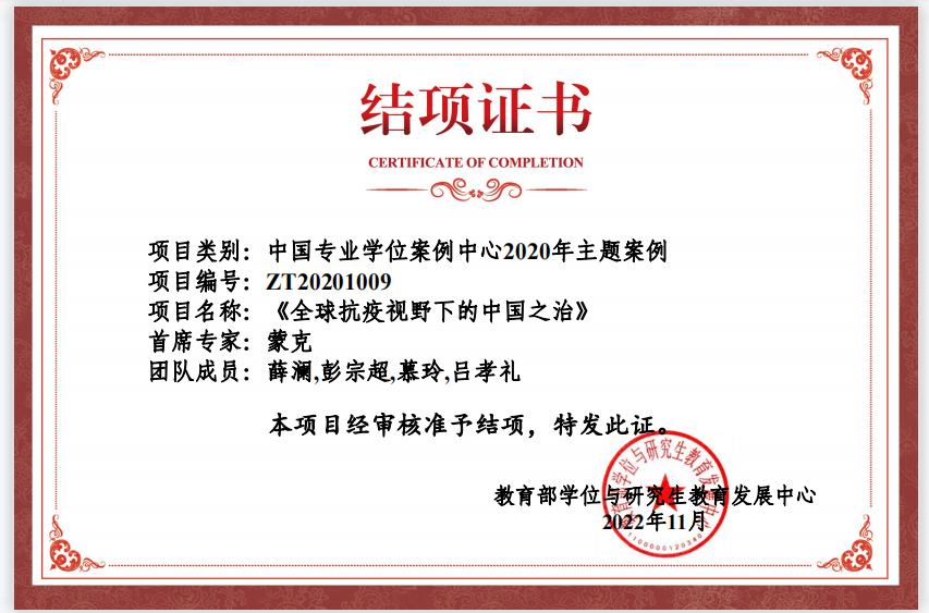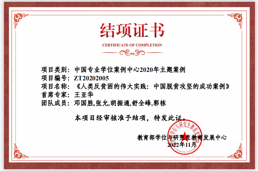 近日,清华公管学院王亚华教授、蒙克副教授作为首席专家领衔的教育部中国专业学位案例中心2020年“脱贫攻坚”和“新冠肺炎疫情防控”两大主题案例通过评审并顺利结项。