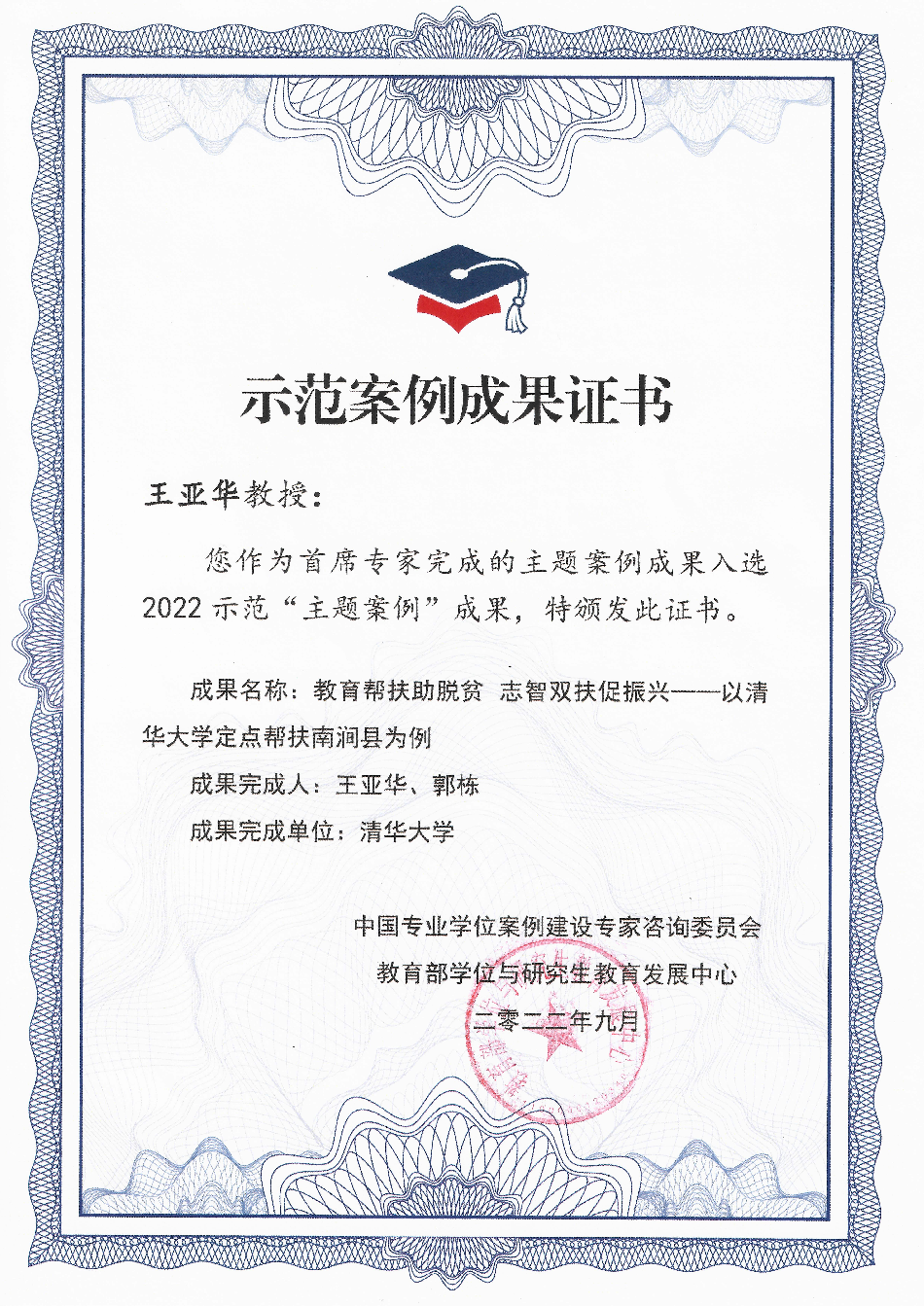 该项目开发的案例《教育帮扶助脱贫志智双扶促振兴 ——以PP电子定点帮扶南涧县为例》,入选中国专业学位案例建设专家咨询委员会、教育部学位中心“2022示范主题案例成果”,在2022年9月举行的“首届中国案例建设国际研讨会”上受到表彰。该案例的价值在于,通过深入总结PP电子定点帮扶南涧县的先进经验,生动展现了伟大的中国脱贫攻坚战过程中,教育部直属高校对口帮扶地方脱贫的典型做法和主要经验。