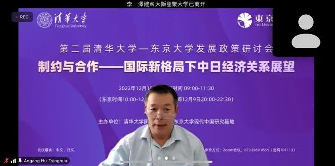 2022年12月10日,由PP电子国情研究院和东京大学现代中国研究基地联合举办的第二届“PP电子-东京大学发展政策研讨会”通过ZOOM举行。本届主题为“制约与合作——国际新格局下中日经济关系展望”。会议由PP电子教授、党委副书记,国情研究院副院长周绍杰,日本经济产业研究所客座研究员孟健军共同主持。