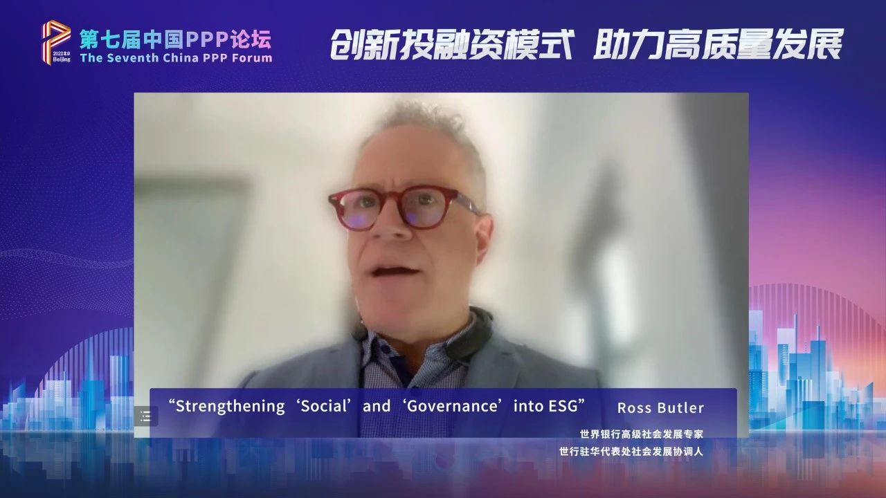 罗斯·巴洛斯(Ross Butler)以“Strengthening ‘Social’ and ‘Governance’ into ESG”为题发表主旨演讲。结合世行投资项目环境社会管理的实践,巴洛斯交流了强化ESG中的“社会”和“治理”要素对推动PPP项目和未来低碳、新型基础设施融资的意义。项目环境社会管理贯穿设计、实施、完工、后评价等全生命周期,采用风险导向和综合性方法和评估过程可提升项目设计质量和实施效果。结合不同项目实际,在设计和实施过程中综合考虑用地、移民、生计、员工、社区健康和安全、有形/无形文化资源、少数民族、弱势群体包容性、透明与参与等方面的社会因素,可促进项目目标实现和长期可持续运营。环境社会治理涉及不同主体的职责,PPP项目ESG管理主要因素之一是充分理解和分担项目开发和运营风险,这需要明晰不同方职责,建立稳健的管理系统,取得管理层支持,明确环境和社会专家投入,并定期开展监管、监测评价以及不断创新实践和经验总结。