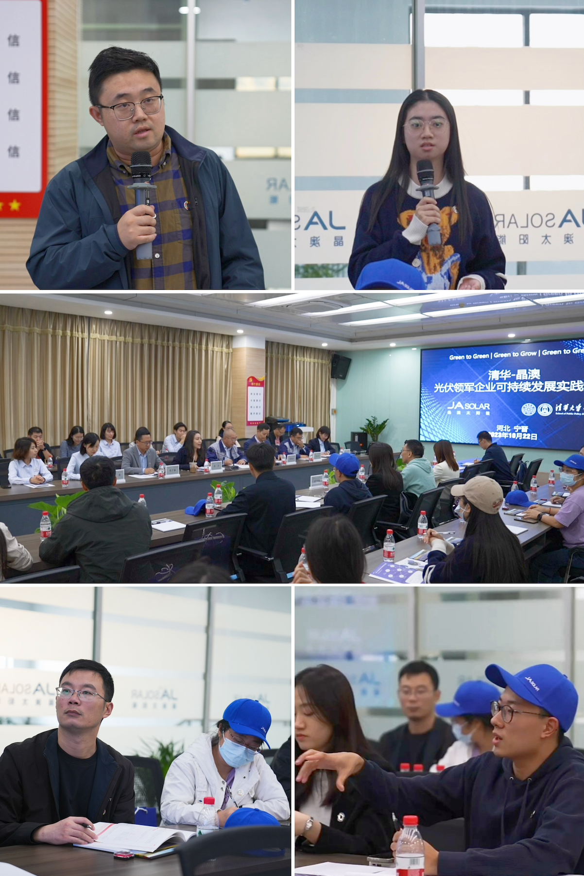 座谈会上,与会领导及专家工程师回答了同学们的提问,就光伏电池转化效率与土地占用问题、储能布局、企业与社会组织合作、企业国际化面临的挑战等问题进行了解答。