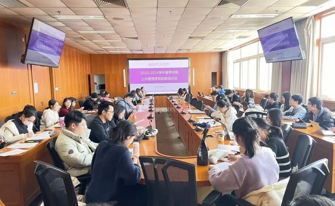2月29日,公管学院举办2023-2024学年春季学期助教培训会。学院院长助理慕玲、教学办主任杨安安,副主任肖文静,学院研究生、本科生课程助教以及教学办各项目教务老师等近70人参加本次培训会。