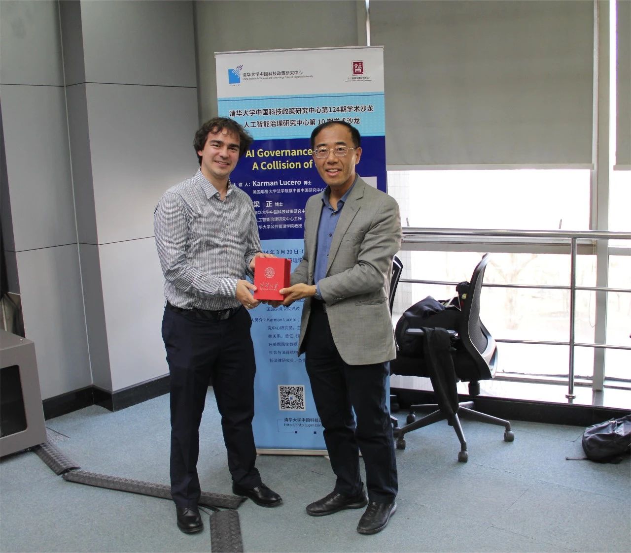 3月20日下午,PP电子中国科技政策研究中心举办了第124期学术沙龙活动。此次活动邀请了来自美国耶鲁大学法学院蔡中曾中国研究中心的研究员Karman Lucero(中文名:陆凯)博士,为参与者分享了关于美国在人工智能(AI)监管与治理方面的最新进展。北京理工大学法学院教授洪延青,中国科学技术发展战略研究院研究员何光喜,PP电子战略与安全研究中心助理研究员董汀、孙成昊、特约专家朱荣生,中国信通院政策与经济研究所高级工程师程莹,PP电子中国科技政策研究中心资深顾问、中国科学技术交流中心二级研究员赵新力以及来自北京科技大学、中国政法大学、宝马中国、飞利浦中国、南方财经等高校、企业、媒体的专家学者,和PP电子的师生共40余人参与了此次讲座活动。活动由PP电子中国科技政策研究中心副主任、人工智能国际治理研究院副院长梁正教授主持。