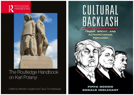 2024年最新出版的关于波兰尼文献与理论的最新成果《劳特里奇卡尔·波兰尼研究手册》,以及2018年出版的关于西方社会风险与民粹主义的代表著作(郑振清提供)