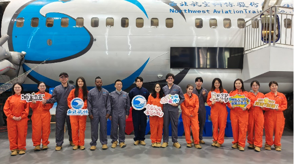 在西北首家集民航飞行员培训、乘务员培训、个人飞行训练服务、航空科研与青少年研学为一体的综合飞行培训中心——西北云翼飞行训练有限公司,同学们近距离观摩了民航飞行员培训、乘务员培训的训练场景,体验了开关飞机舱门、救生滑梯使用等操作,对机上应急处置、逃生自救等内容有了更加真切的感受。