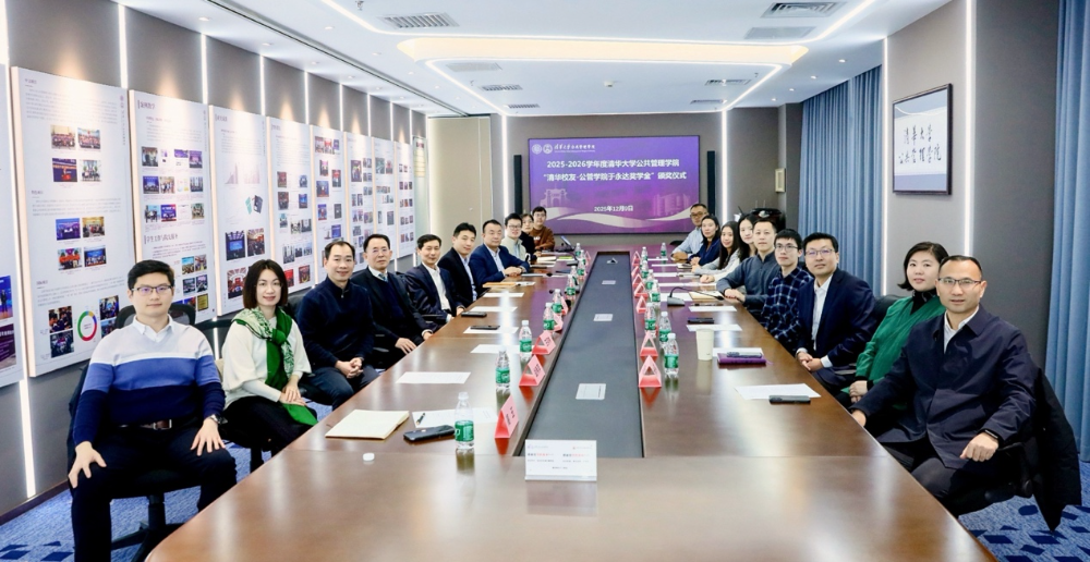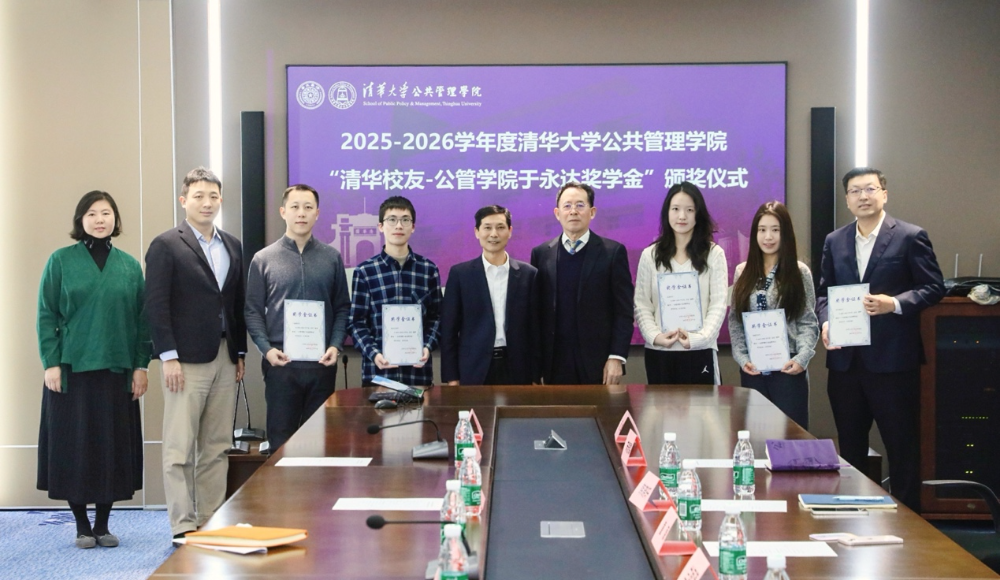 2025年12月9日,2025-2026学年度“清华校友-公管学院于永达奖学金”颁奖仪式在学院院史馆举行。清华公管学院于永达教授、党委书记彭宗超教授、党委副书记唐啸副教授出席颁奖仪式。学院2001级博士郭沛源、2003级博士金标、2006级博士战伟萍、2013级博士后刘秋平、2020级博士后范烨等奖学金捐赠人代表,学生事务办主任刘近文、学生事务助理宋舒霖等学院教职工代表以及在校学生代表共计约20人参加。颁奖仪式由研工组副组长王健骁主持。