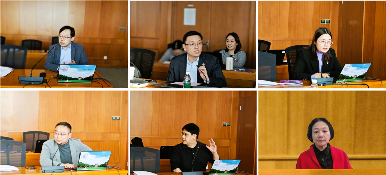汇报交流(从上到下、从左至右依次为:高宇宁、朱旭峰、慕玲、陈天昊、曹峰、沈群红)