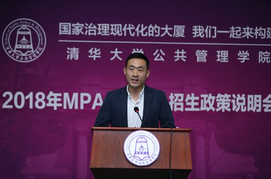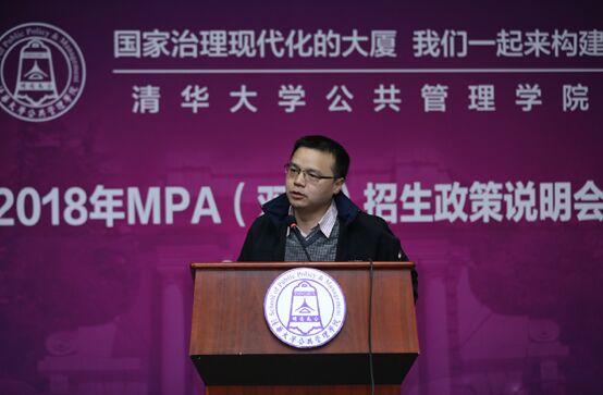 随后, 2016级MPA优秀学生代表高强同学也在说明会上做了专题发言。他分享了2016级MPA学生群体的生动故事,结合自身学习和工作经历,向广大考生热情介绍了报考清华和来清华学习后的真切感想与心得体会。他主要从课程体系、校园生活、同学情谊等方面带考生一起感受清华学习的收获、共同感知清华公管的使命和魅力。